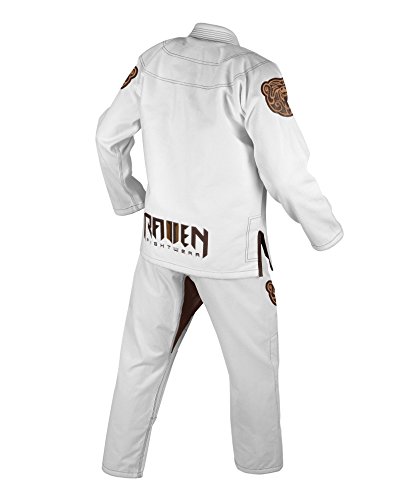 Raven Fightwear BJJ Gi Berserk Men's Nero Bianco Brasiliano Jiu Jitsu Kimono Uomo MMA Uniform Cotone Judo Grappling Arti Marziali Karate (White, A1)