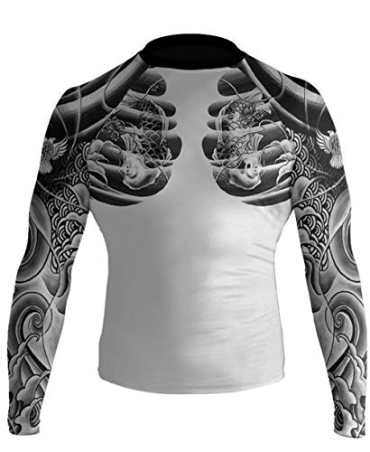 Raven Fightwear Irezumi 2.0 Rash Guard Men's Camicia a Compressione Manica Lunga Uomo Arti Marziali BJJ Fitness Grappling No-Gi (White, XXL)