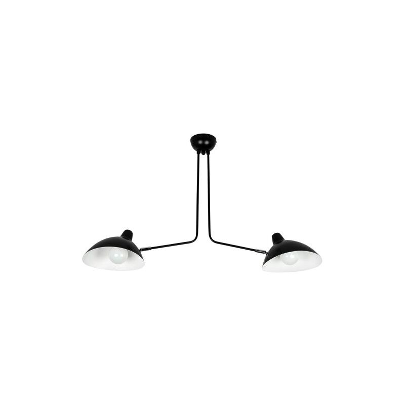 La lampada a due bracci è in metallo. Le coperture tagliate e sagomate a mano sono montate su strutture in acciaio. Il paralume è nero opaco all'esterno, bianco opaco all'interno. Luce: 2 x E14 max. 40 W (non incluso) Struttura: larghezza 25 cm / profondità 23,5 cm Montaggio: dia. 11,5 cm / altezza 7 cm Installazione: installazione a soffitto Peso netto: 10 kg Dimensioni imballo: 68 cm / 40 cm / 34 cm.