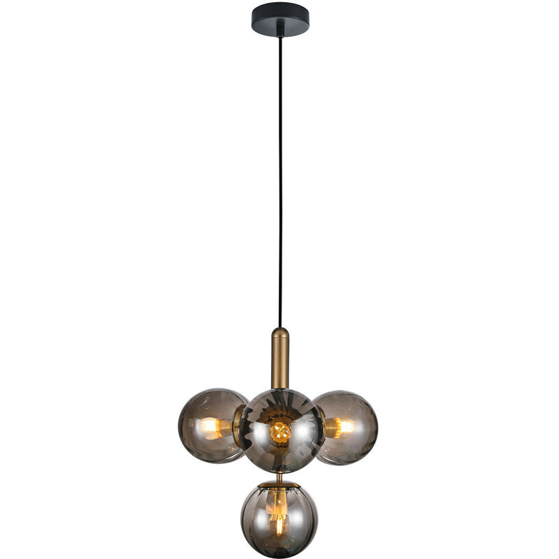Italux Ravena Plafoniera Moderna a Sospensione Globo a 4 Luci, E27 LED | Finitura: ottone, fumé | Materiale: acciaio, vetro | Altezza: 45cm | Altezza massima: 117,5 cm | Diametro: 43 cm | Tipo di lampada: E27 | N. di lampade: 4 | Lampadina inclusa: non inclusa | Potenza (massima): 5W