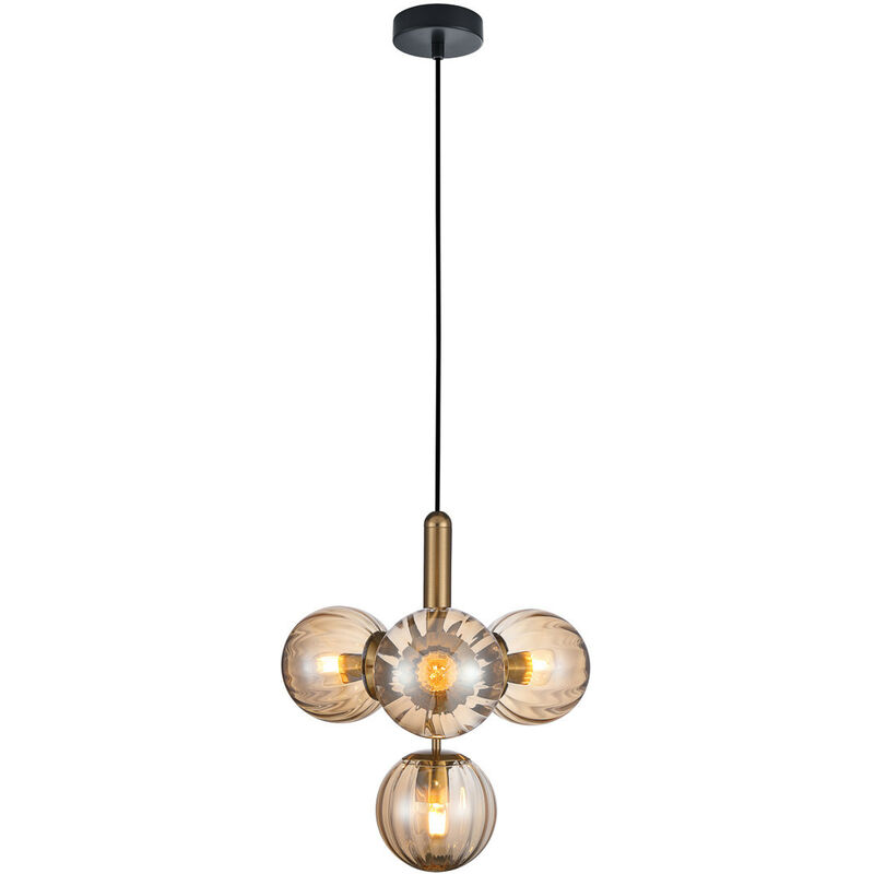Italux Ravena Plafoniera Moderna a Sospensione Globo a 4 Luci, E27 LED | Finitura: ottone, ambra | Materiale: acciaio, vetro | Altezza: 45cm | Altezza massima: 117,5 cm | Diametro: 43 cm | Tipo di lampada: E27 | N. di lampade: 4 | Lampadina inclusa: non inclusa | Potenza (massima): 5W
