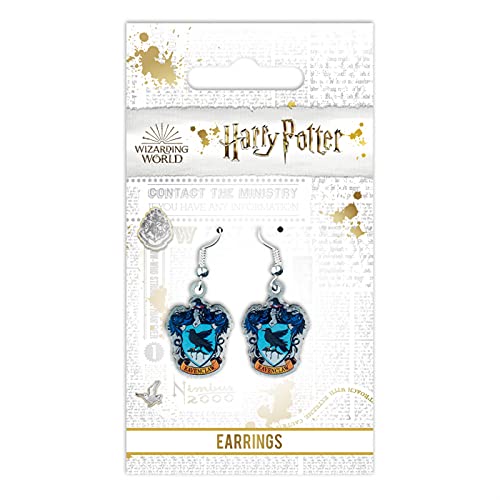 Ravenclaw - Orecchini a forma di stemma in metallo argentato con ganci per orecchini placcati in argento
