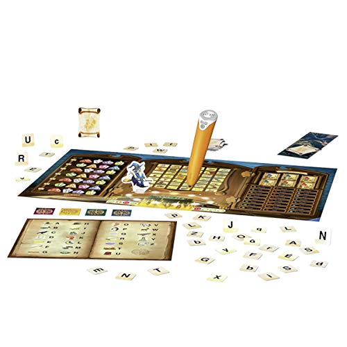 Contenuto: 1 vassoio da gioco, 4 piastrine "gioco", 1 libro magico, 1 pedina magica, 1 tavola corvello, 9 pergameni magici, 38 fiches lettere. Lettore Tiptoi non incluso, venduto separatamente.