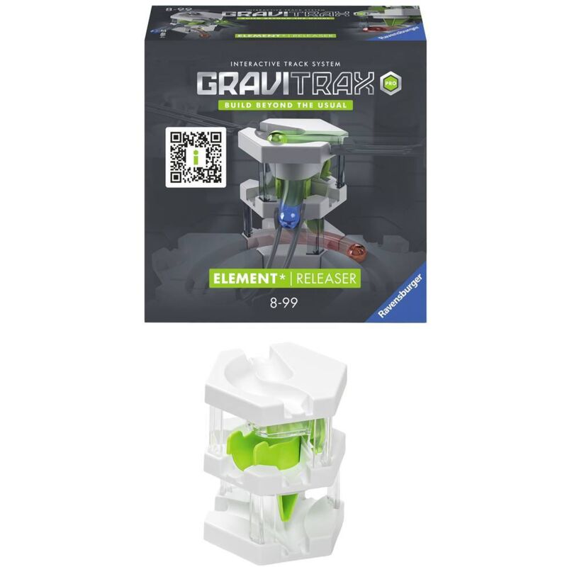 Dettagli tecnici Età minima consigliata (Min) 8 anno GraviTrax PRO Element Releaser Più action con l'elemento Releaser di GraviTrax PER linea. La prima pietra che unisce tre livelli e si influenzano con le sfere.Con questo elemento vengono create le dipendenza su tre livelli. Al livello superiore, su due ingressi è possibile inserire delle sfere nel releaser. Una volta che una sfera sul livello più basso passa attraverso il Releaser, una sfera sul livello più alto si libera e lascia la pietra sul livello medio. In questo modo il Releaser può essere installato come dispositivo di rilascio a sfera e a ritardo. Si possono creare fuochi d'artificio di esplosioni sferiche. Non è necessario caricare manualmente!GraviTrax è un sistema ferroviario a sfera flessibile espandibile e interattivo per bambini di età superiore agli 8 anni: Con GraviTrax i bambini, i giovani e gli adulti non costruiscono solo semplici piste a sfera. Creano mondi di pista a sfera unici. Grazie alla libera