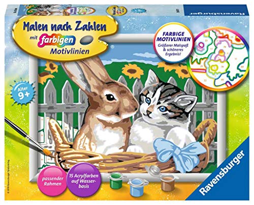 Ravensburger 28477 - Kit per dipingere con i numeri, motivo: amici e cavalli nella stalla (29685), dai 7 anni in su