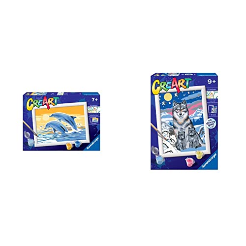 Ravensburger CreArt 200733, Delfini Amici, Dipingere con I Numeri Bambini & CreArt, Lupi al Chiaro di Luna con Glitter, Gioco Creativo per Bambini
