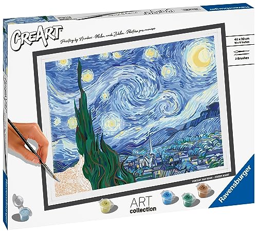 Ravensburger - CreArt ART COLLECTION Van Gogh: Notte stellata, Kit per Dipingere con i Numeri, Contiene Tavola Prestampata 30 x 40 cm, 2 Pennelli, Colori e Accessori