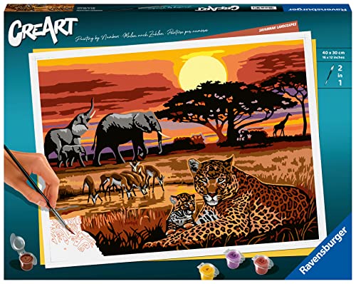 Ravensburger - CreArt Vita nella Savana, Kit per Dipingere con i Numeri, Contiene Tavola Prestampata 30 x 40 cm, Pennello, Colori e Accessori, Gioco Creativo e Relax per Adulti 14+ Anni