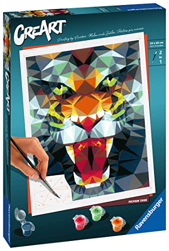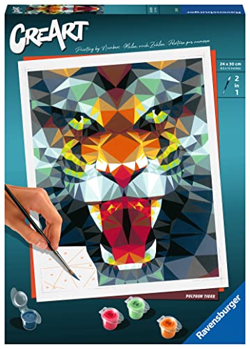 Ravensburger - CreArt Tigre stile Poligono, Kit per Dipingere con i Numeri, Contiene Tavola Prestampata 24x30 cm, Pennello, Colori e Accessori, Gioco Creativo e Relax per Adulti 14+ Anni