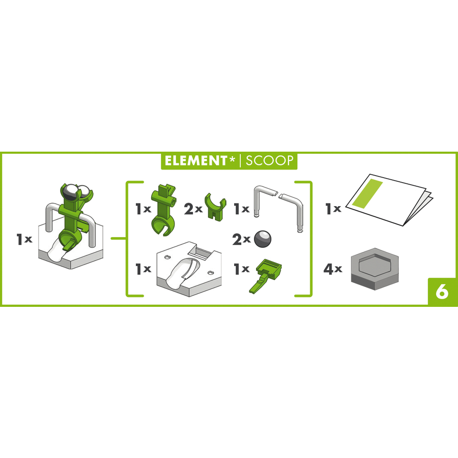 Dettagli del prodotto: Età: da 8 anni in su Con l'elemento Scoop, le palline possono essere sollevate a un nuovo livello per farle rotolare ancora più a lungo Con l'elemento Scoop di GraviTrax la palla vola sulla pista costruita di GraviTrax In questo modo, gli ostacoli e i dislivelli della pista possono essere superati in modo spettacolare. Quando una pallina rotola nello Scoop, una leva viene rilasciata in modo che il braccio con la pallina scatti rapidamente verso l'alto e lanci la pallina stessa. Combinato con qualsiasi Starter Set GraviTrax, l'elemento Scoop dà ancora più slancio ed energia alla corsa delle biglie.