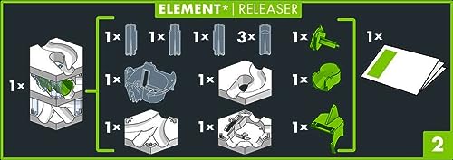 RELEASER: Si crea una dipendenza su 3 livelli. Al livello superiore, 2 ingressi consentono alle sfere di rotolare e attraversare il Releaser. Non appena una palla del livello inferiore rotola nel Releaser, viene rilasciata una palla del livello superiore e lascia il livello intermedio.