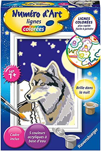 Ravensburger Numero d'Arte, formato 8 x 12 cm, ritratto di lupo - tempo libero - kit di pittura per numero - con pittura fosforescente - attività rilassante e creativa - a partire dai 7 anni - 28785