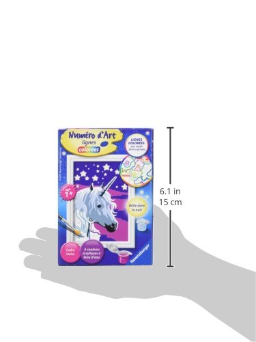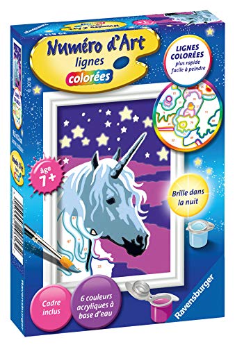 Un kit mini formato per iniziare la pittura per numero. Ideale per scoprire questo unicorno che brilla nella notte.