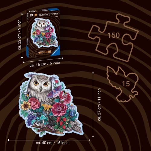 Ravensburger - Puzzle di legno Shaped, Gufo, Puzzle per adulti e bambini,150 Pezzi,10+anni
