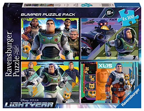 Ravensburger - Puzzle Lightyear Disney Pixar, Collezione Bumper Pack 4X100, 4 Puzzle da 100 Pezzi, Età Raccomandata 5+ Anni