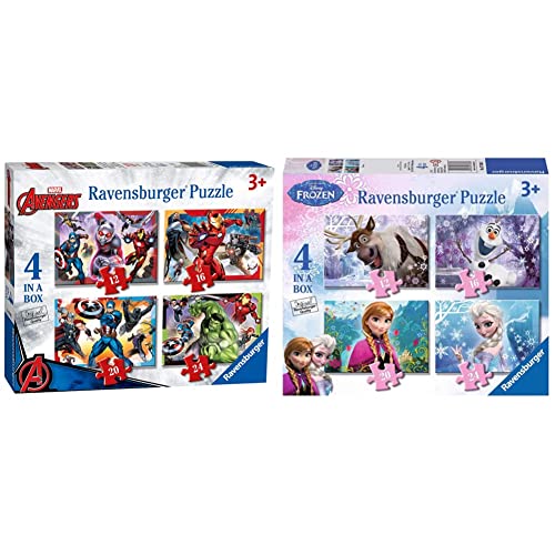 Ravensburger Puzzle, Marvel Avengers, 4 Puzzle in a Box, 12-16-20-24 Pezzi, Puzzle per Bambini, Puzzle Marvel, 3+ Anni & Puzzle Disney Frozen, Collezione 4 in a Box, 3+ Anni