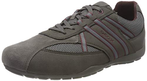 Geox Uomo U Ravex C Sneakers Uomo, Grigio/Rosso (Anthracite/Bordeaux), 43 EU
