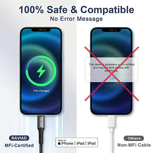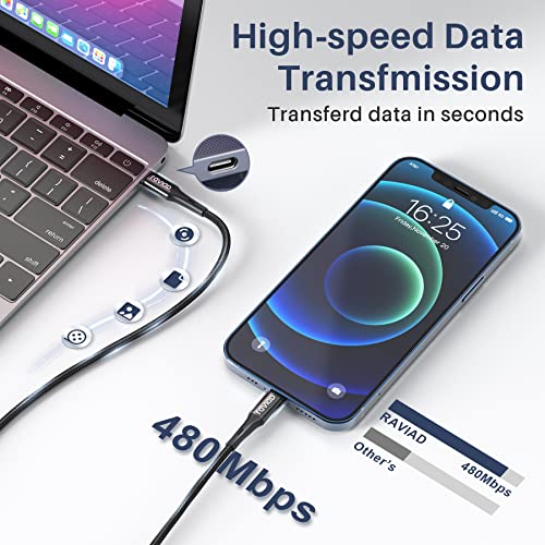 【Certificazione MFi】RAVIAD cavo usb c iPhone la certificazione MFi, assieme a vari test rigorosi, garantiscono una carica sicura e una piena compatibilità con iPhone dispositivi, non verrà mostrato alcun messaggio di avvertimento.