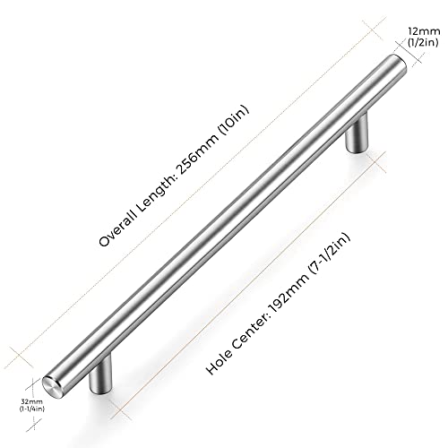 Dimensioni delle maniglie: centro del foro: 192 mm, lunghezza totale: 256 mm, diametro: 12 mm, altezza: 32 mm