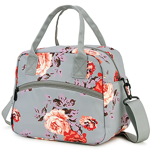 RAVUO Borsa Termica Porta Pranzo, Resistente All'acqua Borsa Frigo Borsa Termica Riutilizzabile Borse Alimenti per Donna Uomo Bambino Adulti Ufficio Scuola Picnic Grigio Floral