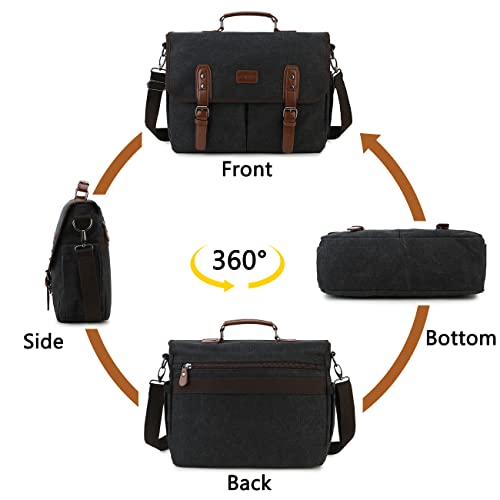 RAVUO Borsa Tracolla Uomo, Impermeabile Borsa Lavoro Uomo Tela Borsa Messenger Computer 15.6 Pollici Borse Spalla Laptop Tracolla Tote Grande Scuola Vintage Bag Nero