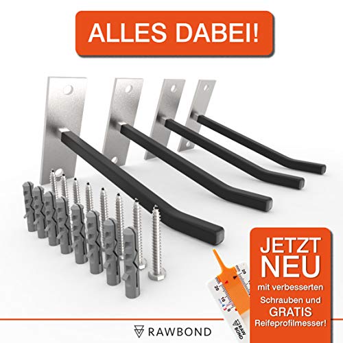 RAWBOND - Supporto da parete per 4 ruote, porta pneumatici da parete incluso Viti e tasselli. Supporto per i vostri pneumatici e cerchioni in garage, Supporto per cerchioni con eBook in omaggio.