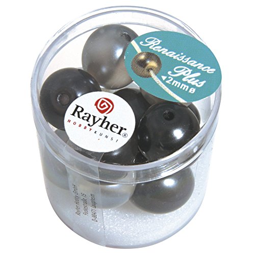 Rayher 14497000 Renaissance Perle di Vetro semitrasparenti, 14 mm con Foro Grande, Confezione da 12 Pezzi, Bianco/Grigio Mix