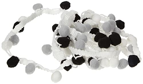 Bordatura pompon in bianco e nero, dimensione della bordatura 3cm in totale, palline pompon 2cm, lunghezza 2m