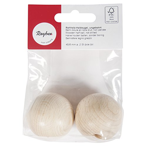 Rayher 6244900 - Sfere di Legno Grezzo FSC100%, semforate, Diametro 40 mm, Foro 8 mm