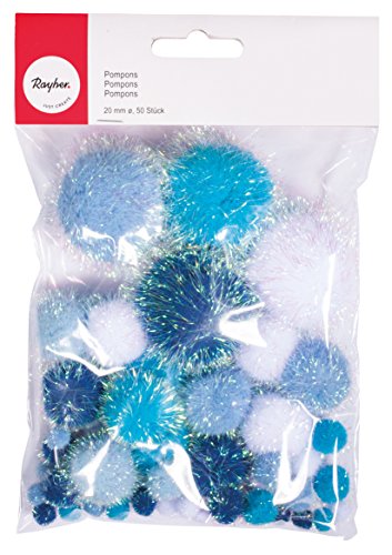 Rayher 76529000 Pompon Metallici, Assortito, Bianco-Blu