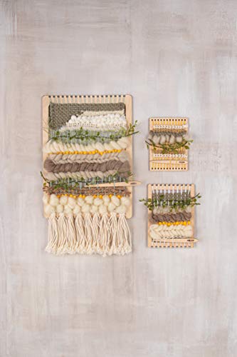 Rayher set di telai in legno naturale, a forma rettangolare, 11 pezzi, 3 telai diversi con navette, aghi, pettine, per lavori creativi di tessitura, 63125505