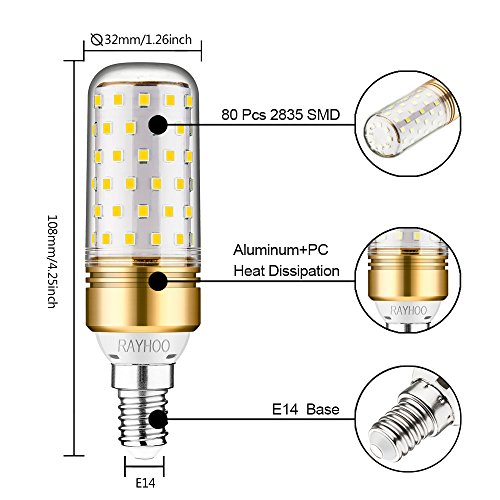 Rayhoo Lampadine a LED E14, 12 watt equivalente a 100 watt, luce bianca calda da 2700K, 1200 lumen, per candelabri, lampadari e portacandele decorativi con attacco E14, per lampade con luminosità non regolabile, confezione da 4