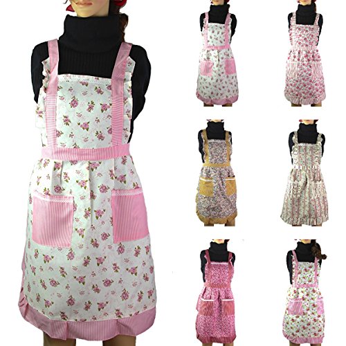 Raylinedo Stylish Rose Flower Pattern Women Chefs Cooking Cook Apron Tabard with Twin Double Pockets