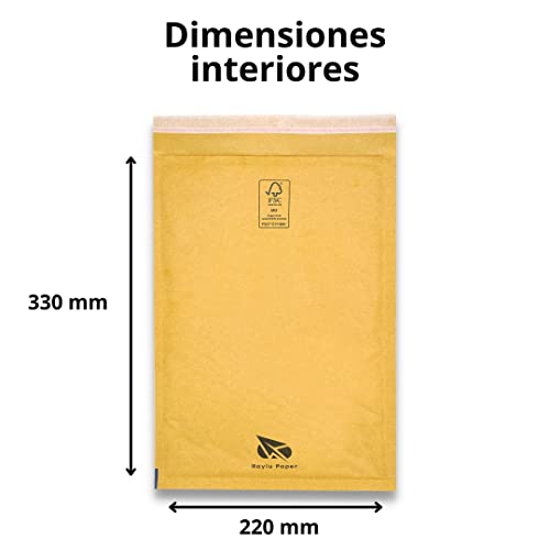 RAYLU PAPER - Confezione da 10 buste a bolle Kraft imbottite con chiusura autoadesiva, buste postali Kraft imbottite marroni (220 x 330 mm)