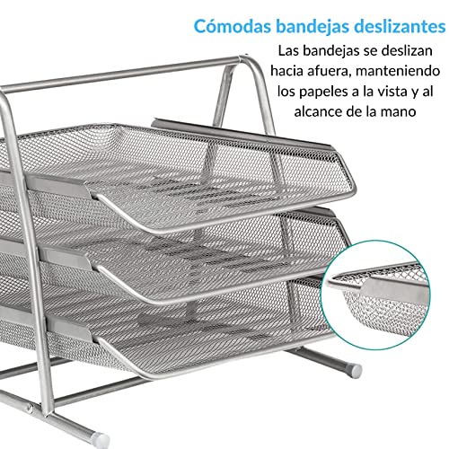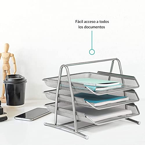 RAYLU PAPER - Vassoio per Lettere e Documenti, Organizzatore da Scrivania, 3 vassoi metallici di facile accesso (Vassoio triplo, Argento)
