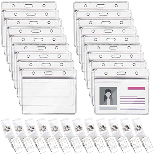 Rayong 40PCS(20 Set) Porta Badge Impermeabile con Clip Metallica Porta Badge Plastica PVC Trasparente Per Carta Permesso Di Lavoro,Studenti