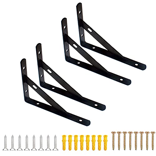 Rayong 4 Pezzi Staffa Mensola in Acciaio Inox, 15cm * 10cm Staffe per Mensole Pesanti a L, Supporti per Mensole Triangolare con Viti Ancore (Nero)