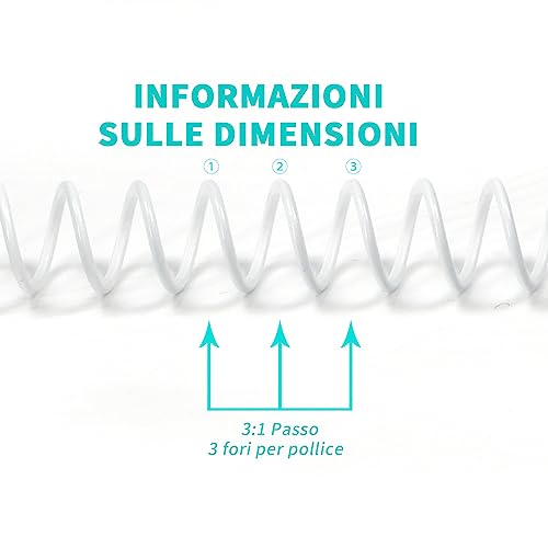RAYSON Bobine di rilegatura a spirale, 60 fogli, passo 3:1, 11,1 mm, bianco, A4, confezione da 100