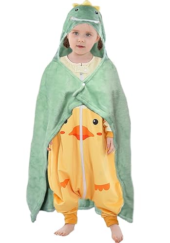 Rayson Invernale Coperta Mantello per Bambini con Cappuccio Morbido Pile di Corallo Carino Indossabile Oversize Coperta Regalo per Ragazzi e Ragazza(Dinosauro)
