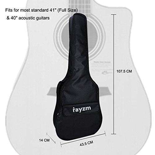 Rayzm borsa custodia per chitarra per chitarre acustiche 41 "(dimensioni complete) e 40", Imbottitura in nylon 10mm, 2 cinghie di spalla e una maniglia, 2 chiusure lampo, 1 tasca frontale grande.