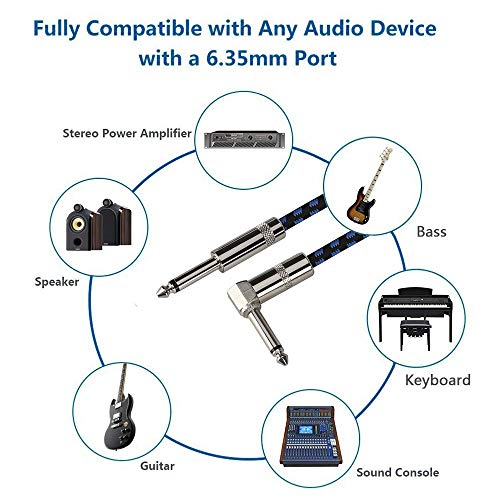 Rayzm Cavo Jack 1/4" da 5 Metri Noiseless per Chitarra/Basso, Connettore Maschio Mono e Cavo Avvolto in Tessuto Blu e Nero