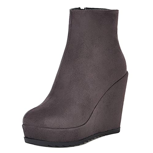 RAZAMAZA Stivali con Tacco Alto Zeppa Donna Elegante Zipper (34 EU,Grey)