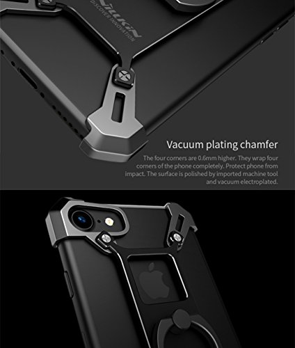 RBERJ Cover Custodia Barde per iPhone 7 Custodia Protettiva in Lega di Alluminio Cover Posteriore con Quattro Angoli in Lega di Zinco e Anello in Lega di Zinco (Colore: Nero)