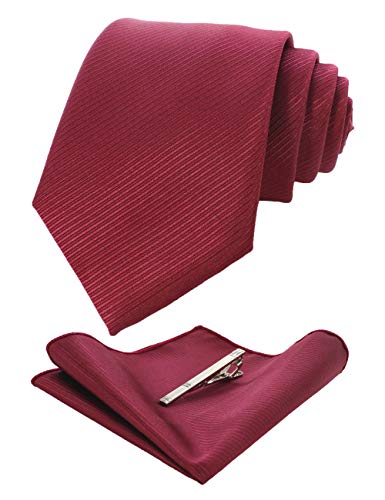 RBOCOTT Cravatta tinta unita e tasca quadrata, set fermacravatta per gli uomini, Borgogna 2, Medium