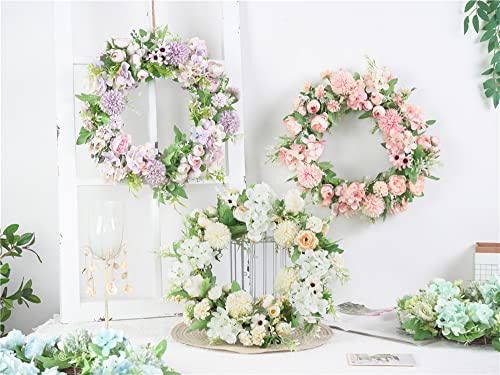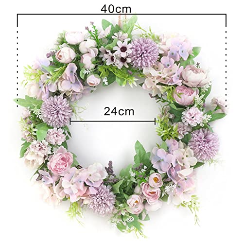 Rcbmn Corona artificiale per porta d'ingresso, 39,9 cm, ortensia bianca e peonia, floreale primaverile, decorazione per matrimoni, festival di benvenuto (viola chiaro)