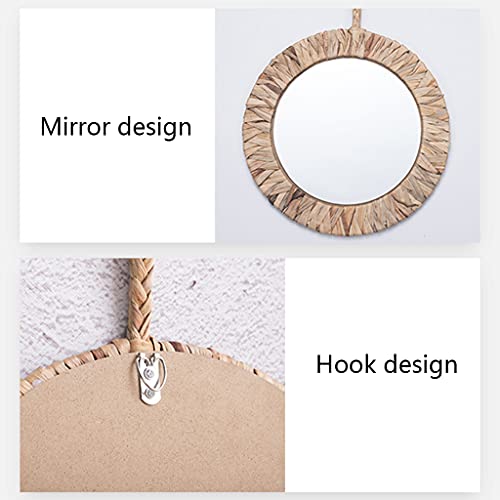 Rcevbocc - Specchio da appendere in rattan, stile pastorale in vimini, rotondo, da parete, decorazione artistica fatta a mano, per ingressi, bagno e soggiorno