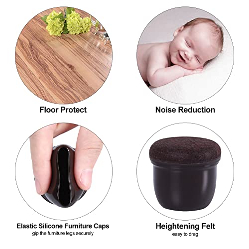 RCHYFEED 24 pezzi 19-25 mm Proteggi Gambe per Mobili 1'' Coprigambe per Sedia con Feltro, Elastiche Protezione per Gambe Delle Sedie per Antigraffio, Feltrini per Sedie Furniture Chair Leg Protectors