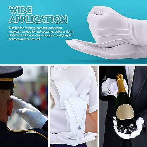 Ampio utilizzo: i guanti bianchi sono adatti per catering, facchinaggio, cerimonie, cene, guardie, uniformi della polizia, giacche, costumi di Babbo Natale possono essere utilizzati anche per matrimoni, feste a tema, sfilate, balli, gruppi musicali, teatro, spettacoli e altri luoghi formali.