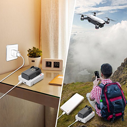 Compatible with DJI Spark Battery and Controller and the single base can powered by power banks.