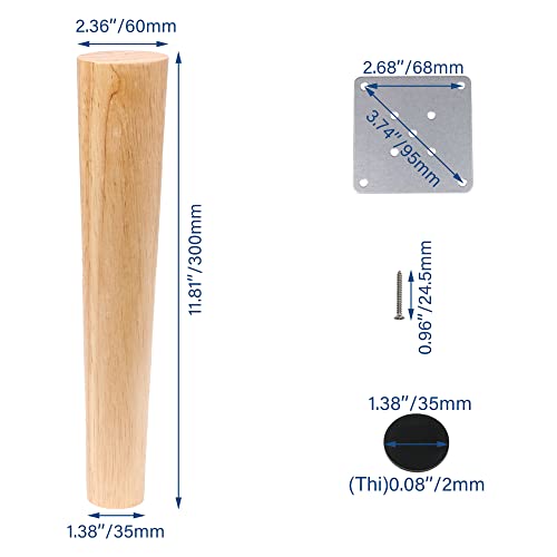 RDEXP Piedi in legno di quercia affidabile per mobili in legno, altezza 30 cm, a forma di cono in legno per armadietti, set da 4
